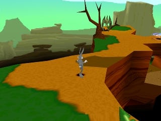 I remember when playing this demo I was mesmerised by the interactivity of playing as Bugs. You could run, jump, hover with a twirl of his ears, roll around, kick and you could dive into rabbit holes and dig around. You could also freely dive anywhere that wasn’t a rabbit hole and go smack into the hard ground on his head with a resounding thud and comical honk. For me as a 7 year old that was growing up with Looney Tunes cartoons and loving them to death, this was a huge thing to be able to do everything that Bugs can do and everything a cartoon character would do. I would even dive off the stage just because I could. I loved the fun of the interactivity of it all, to be given this cartoon toy and playground to galavant how I wanted around this singular level.
