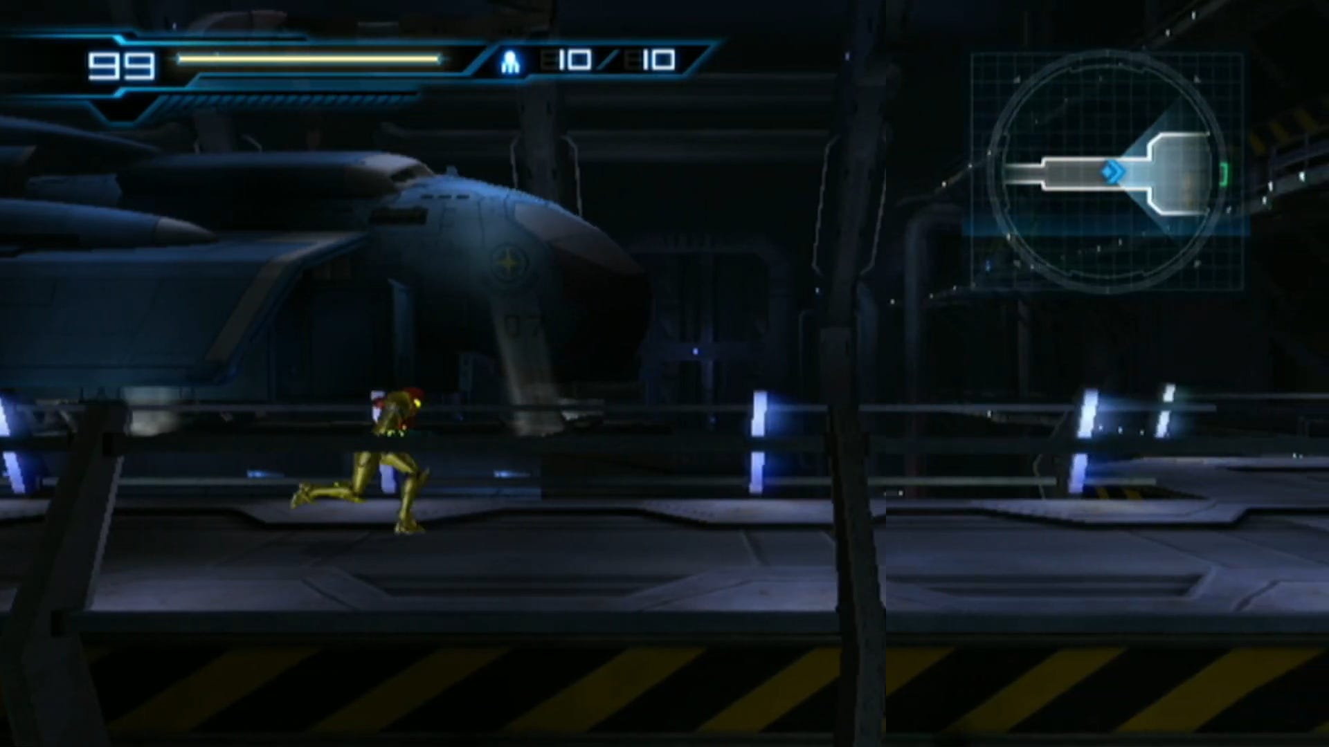 Controlling Samus is pretty nice too. You use the Wii remote (Wiimote, I say) much like a NES controller for the most part, directional buttons to move, A to turn activate morphball, 2 to jump and 1 to shoot, hold it to charge up your beam, + opens the pause/mp/status menu. But pointing it at your sensor bar you go first person ala Prime to fire off missiles and blasts and look and scan around. You don’t need to scan everything like Prime, this is more action focused than a lore heavy adventure after all. There are some moments in the story where you’re fixed into this first person view to scan around at a point of interest to advance forward, although in some points it takes a lot of looking around for what you’re supposed to find because what you need to look at isn’t entirely obvious or visible. For example facing Ridley, you are to find a hatch to blow up to clear the smog but it’s so obscured (naturally, sure,) you spend longer than is necessary trying to find it. There are also some short moments where you will be fixed behind Samus pacing through an area cautiously before scanning a point of interest, or following a fleeing Madeline Bergman. Namely, though, you will be in this position in elevators or exploring the station’s toilets.