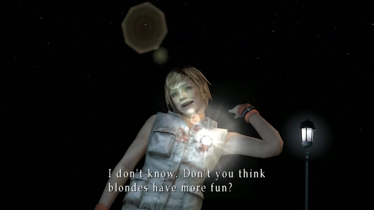Naturally there are multiple endings too. Kill very little and take very little damage and you get the good ending, which is also the canonical ending. Go on a murder spree and take a lot of damage and you get the bad ending where Cheryl becomes Alessa, kills Douglas and everything ends grimly. I’ve always been reluctant to get the bad ending, but even when I tried to get it I still got the good ending! And it wouldn’t be a Silent Hill game without a UFO ending. Upon multiple murderous playthroughs and accumulating 333 kills you unlock the Heather Beam, a special beam power. One of the outfit unlocks is a special one with a Sailor Moon esque rod called Transform Costume. Equip it and you get a magical anime girl cutscene to put it on. Wearing this while using the Heather Beam gives it an upgrade to the Sexy Beam. Kill 33 enemies with this and once you reach Heather’s apartment complex you get the UFO ending. Marvelous.